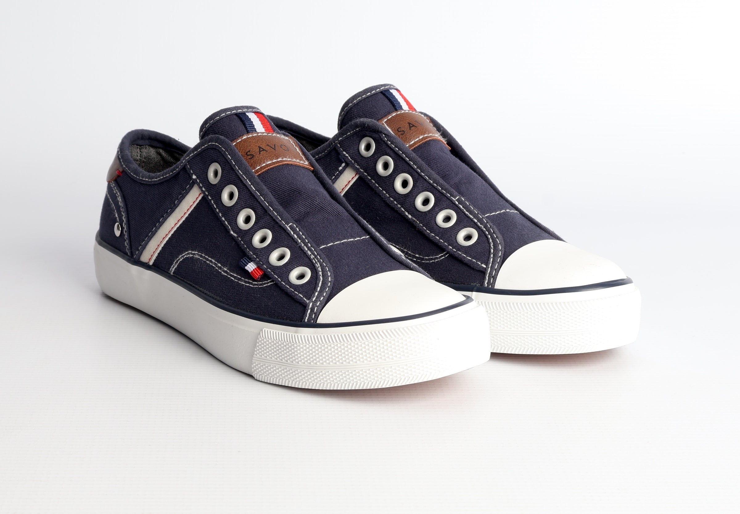 Canvas Vulcanised sneaker with TPR Rubber outsole. Lace-less upper with elasticated tongue for easy entry.